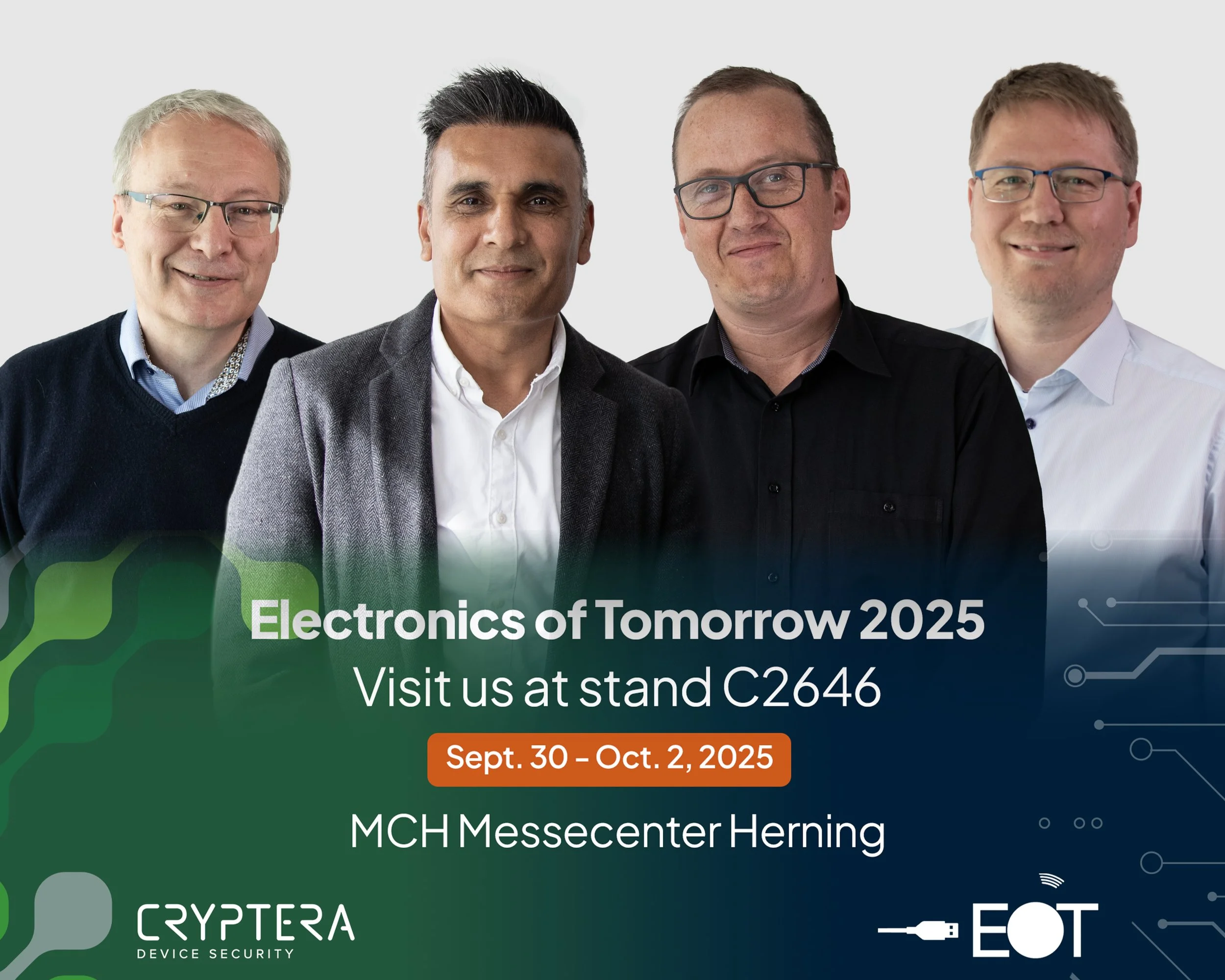 We’re pleased to share that Cryptera Device Security will be part of EOT – Electronics of Tomorrow, taking place from September 30 to October 2 at MCH Messecenter Herning. The event brings together industry leaders, innovators, and security specialists to discuss the latest developments in electronics and connected technologies—making it an ideal setting to highlight the importance of device security.